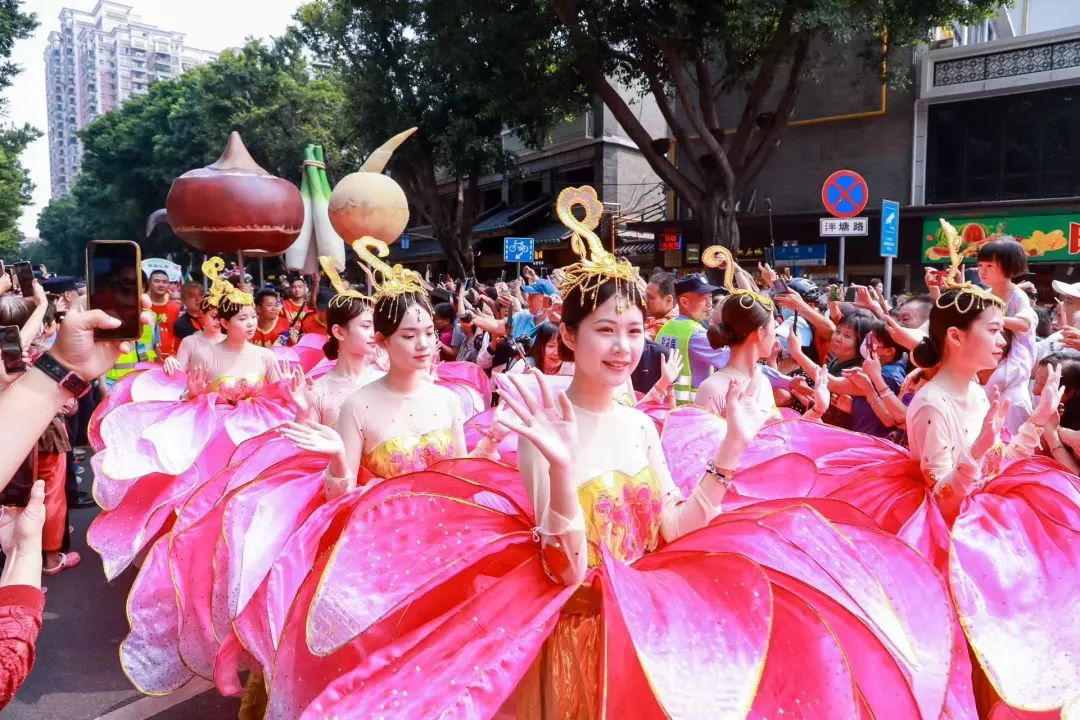 除了昨年“顶流网红”泮塘五秀、舞龙舞狮等在地文化特点浓厚的展示除外,本年巡游方阵中也交融了粤剧粤曲、西关姑娘、花仙子、木偶剧、麒麟舞等广府元素及热点动漫IP变装,另外结合本年第十五届全运会主题,两个可儿的全运会安靖物“嘉宾”将闪亮登场,携教养员方阵将向市民搭客展现湾区教养风范,助力全运会!