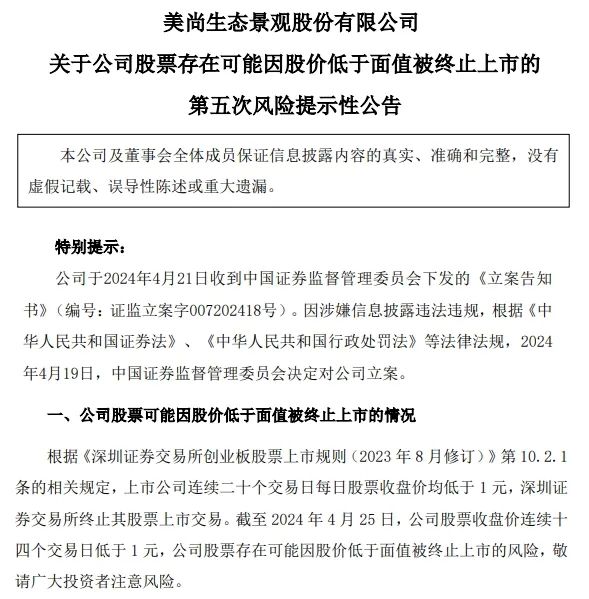 4月25日晚间,*ST好意思尚发布公告,收尾25日,公司股票收盘价指令14个交游日低于1元,公司股票存在可能因股价低于面值被远离上市的风险。